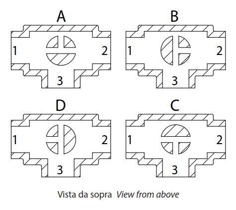 活塞球上配備了4個(gè)密封圈,使介質(zhì)流體在其中一個(gè)接口關(guān)閉情況下能朝所有方向流動(dòng)。