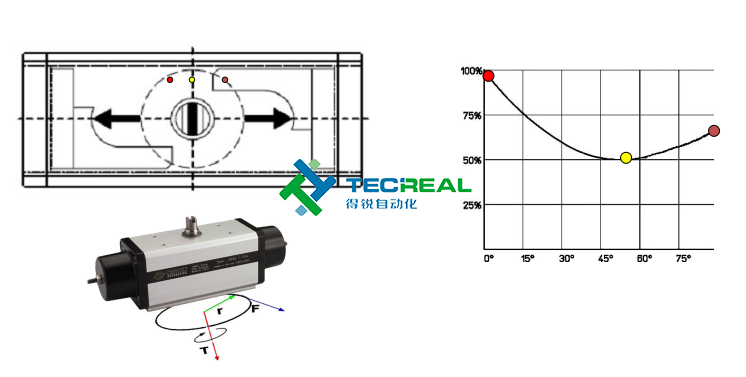 綜上所述,OMAL的撥叉式氣動執行器在輸出扭矩上是更為適合球閥和蝶閥啟閉,因為其結構的不同,這也就導致了他們兩者在輸出扭矩上的不同。