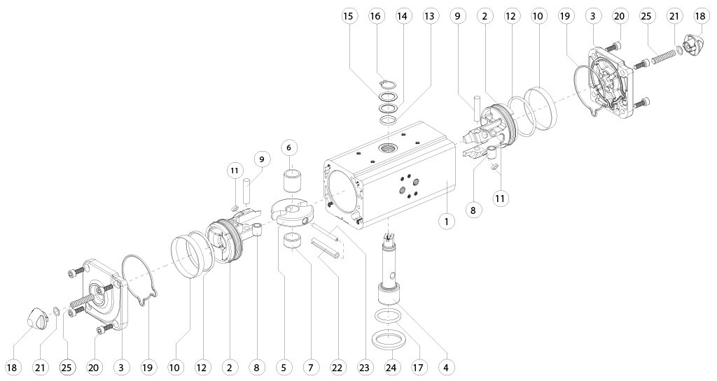 4.滾動摩擦的十字滑塊(通過活塞和無傳動裝置的軸,將線性運動轉換為旋轉運動)。活塞和傳動軸之間的摩擦力更小,從而減少零部件磨損。打開和關閉時有著更強的起動扭矩,相較于齒輪和齒條式執行器,其尺寸更小,安裝空間需求更低。相較于齒輪和齒條式執行器,其重量更小(-30% Kg/Nm),建造基礎設施時可降低成本。相較于齒輪和齒條式執行器,其耗氣量更低,(雙效:-40% 空氣 cm3/Nm;單效:-20% 空氣 cm3/Nm),能夠有效降低壓縮機的工作負荷,或直接使用小尺寸壓縮機。