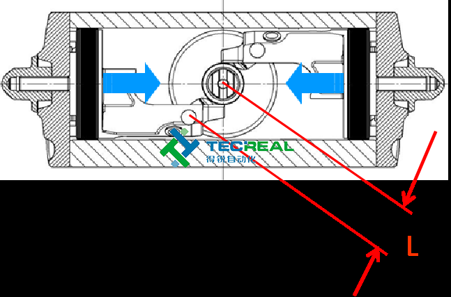 其扭矩特性滿足蝶閥的啟閉特性,更方便控制蝶閥,且缸徑小,撥叉式結(jié)構(gòu)體積小,控制蝶閥時行程較齒輪齒條式短,因而耗氣量較齒輪齒條式少。