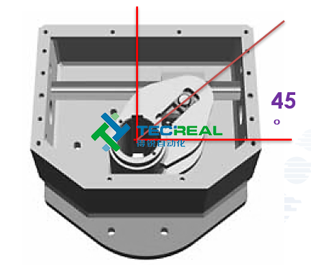 這種執行機構,撥叉是位于中央機構控制活塞運動,但與氣缸活塞是分開的,這就解決了很多的密封問題,并且允許使用各種氣體或是液體控制,而不是只有空氣作為氣源.例如:水,氣體甲烷等。