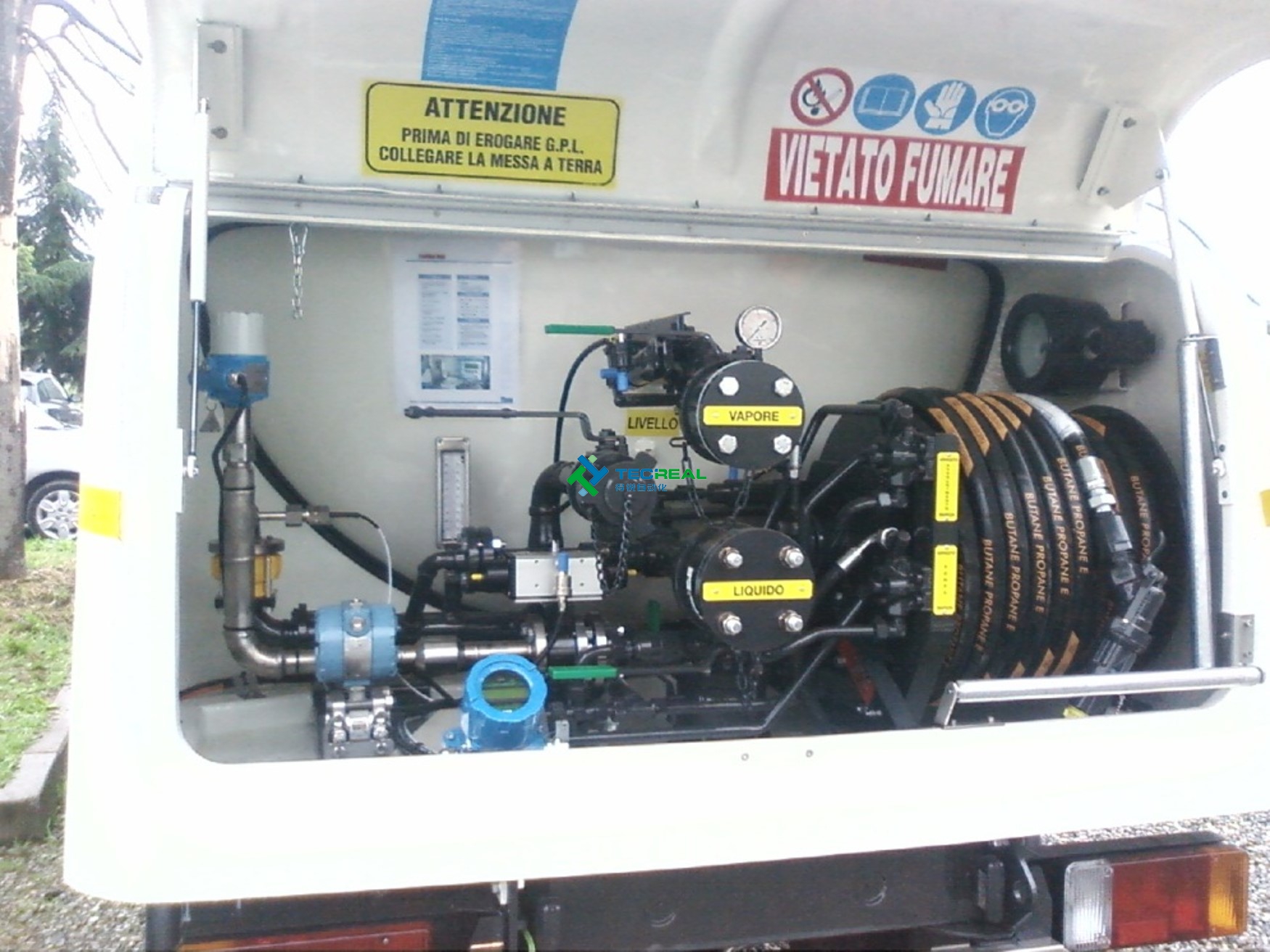 氣體段 (黃顏色管道,壓力約10bar),LPG 液體段 (白顏色管道, 壓力約 21 bar)