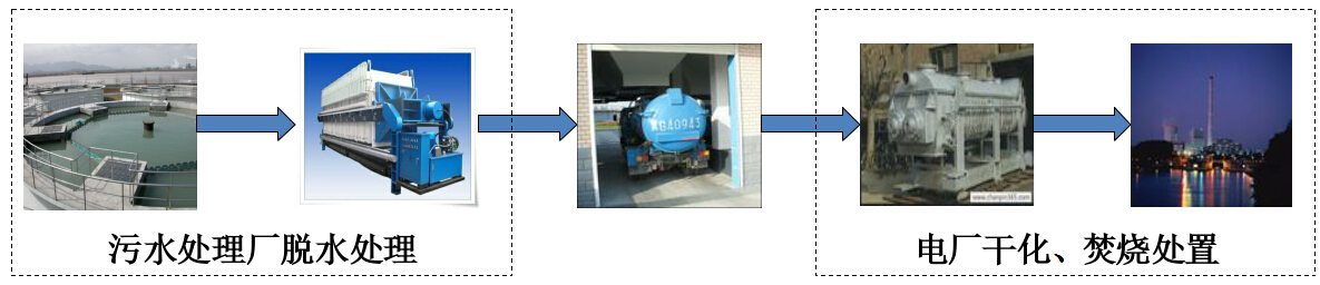 (3)濃縮→前處理→脫水→焚燒(或熱分解)→灰分填埋;