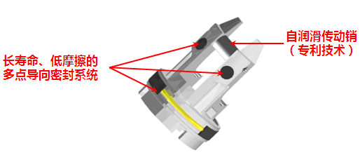 注:BETTIS也有PTFE+碳石墨導(dǎo)向帶設(shè)計(jì),但該導(dǎo)向帶不起密封作用,僅能起到活塞導(dǎo)向的作用,真正起活塞密封作用是O形圈。 |