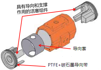 BETTIS(貝蒂斯) 導(dǎo)向帶+導(dǎo)向套導(dǎo)向裝置缺點(diǎn):導(dǎo)向帶只起導(dǎo)向作用,不能起到密封作用。導(dǎo)向套與活塞之間摩擦大,易磨損。