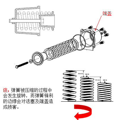 BETTIS(貝蒂斯) 多根彈簧的彈簧復(fù)位裝置,缺點(diǎn):多根彈簧,在壓縮過(guò)程中,可能同時(shí)對(duì)端蓋及活塞造成損害。