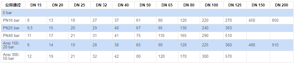 扭矩的數據隨工作介質的溫度而變。安全系數設定為1.4。與開始使用時的數據相比,長期頻繁使用后扭矩數據會有明顯的減小。(*): 如工作介質是驅油劑或含有固體顆粒,工作扭矩與上述附表數據相比將增大.