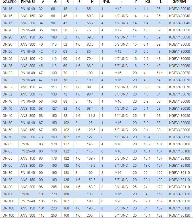 密封材料:PTFE加玻璃(RPTFE-GF),PTFE加碳石墨(RPTFE-CF)。如需其它密封材料,請與我們的銷售部門聯系。