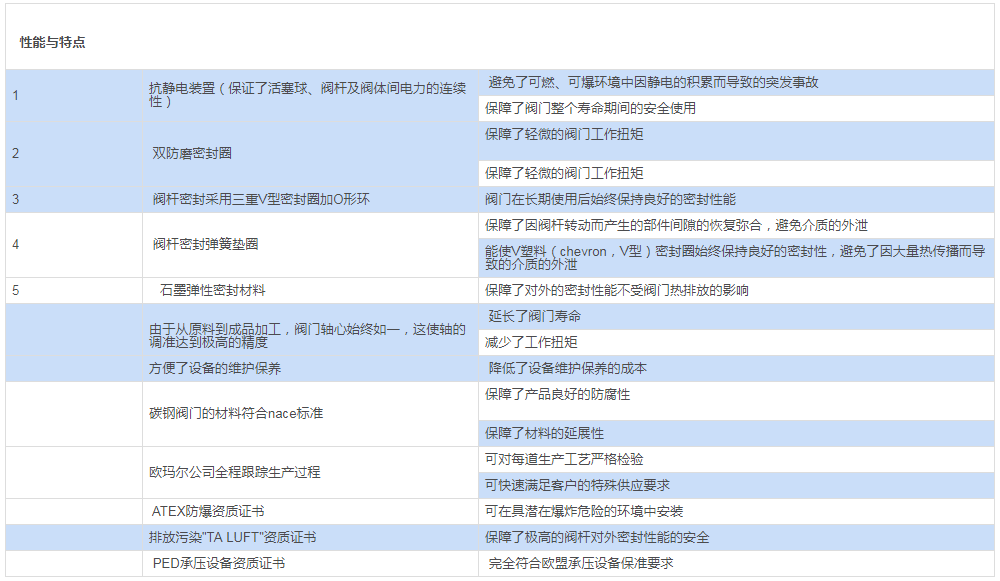 閥桿密封:V型系列,采用TFM1600聚四氟乙烯材料