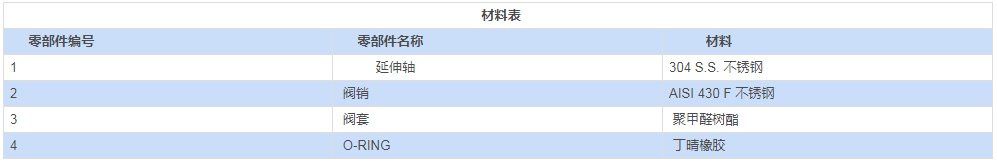 手柄、螺帽及閥桿彈簧采用不銹鋼