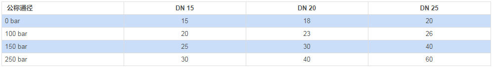 | 對(duì)于公稱通徑 DN15 僅能提供 316 S.S.不銹鋼材料的 |