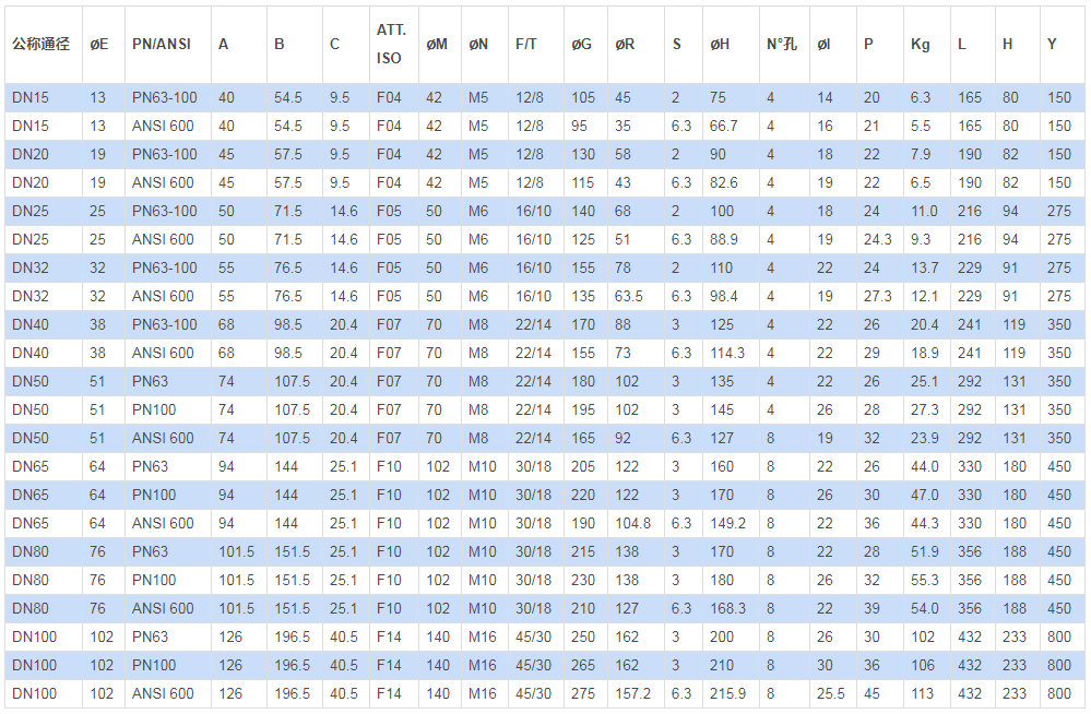 | ? : 對于公稱通徑 ≤DN40x32 的閥門型號,僅提供采用 DEVLON 材料做的 |