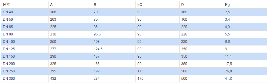 可提供的產品規格:從公稱通徑DN 40 至 DN 300 ,PN 10 - PN 16